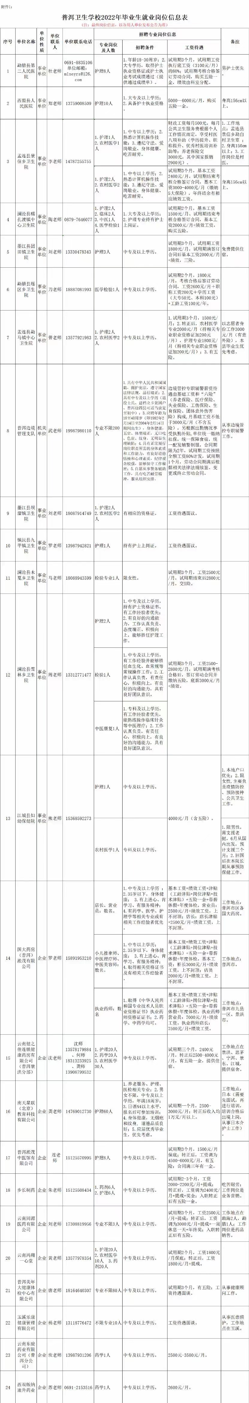 附件1:《普洱卫生学校2022年毕业生就业岗位信息表》