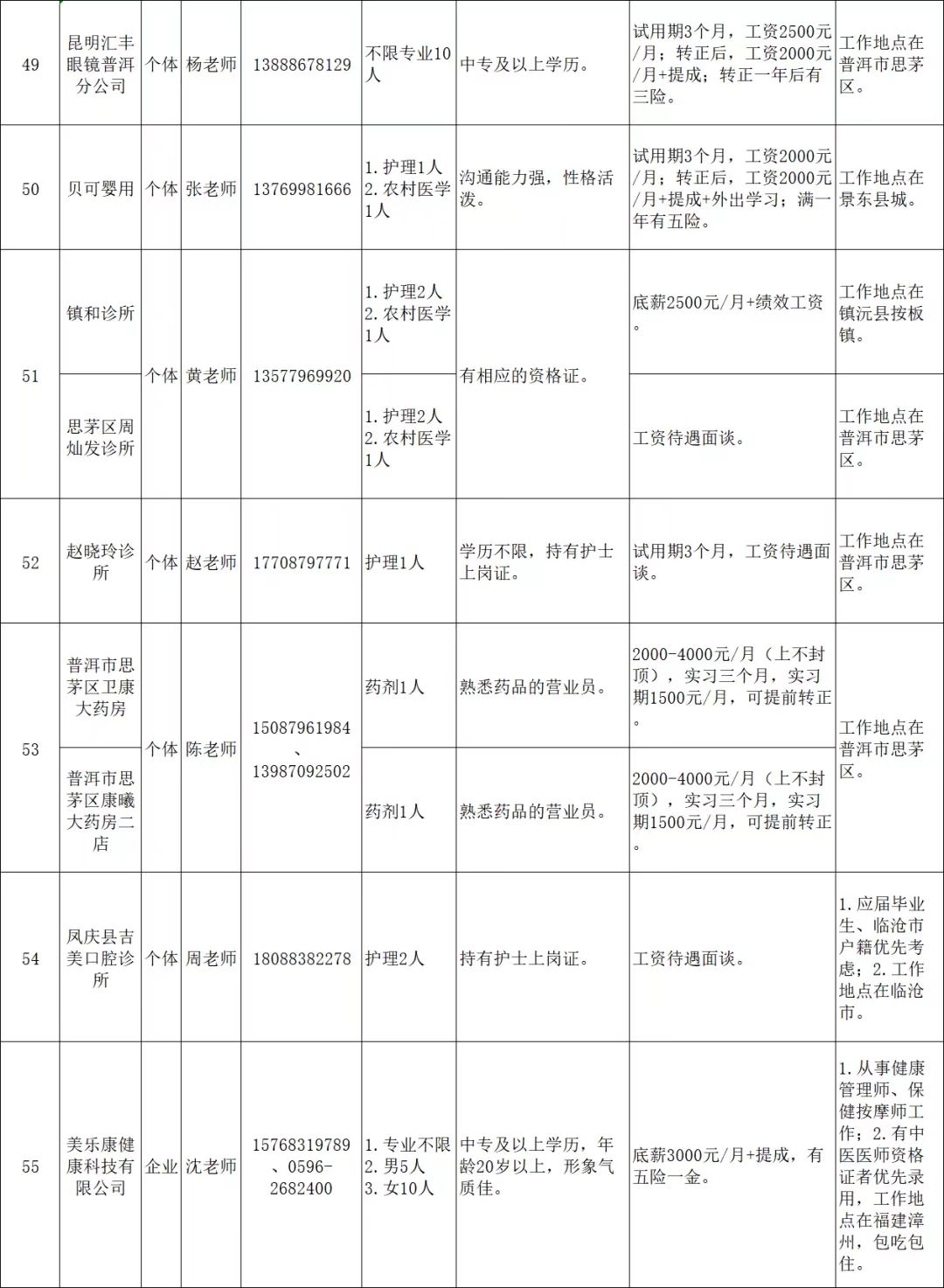 为帮助大家搭建就业平台,普洱卫生学校收集了普洱市内外部分用人单位招聘信息予以发布,供广大同学们参考,若有就业意向的同学,请与用人单位联系,《普洱卫生学校2022年毕业生就业岗位信息表》详见附件1。在招聘过程中,单位若提出需要长时间培训、签约前长时间实习、收取培训费、扣押证件等不合理要求,应慎重考虑并及时向学校或招生就业指导办公室反映。请妥善保管好个人证件等,谨防个人信息泄露,谨防诈骗!祝同学们都能找到自己满意的工作。